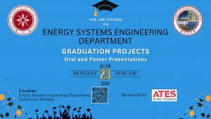 Enerji Sistemleri Mühendisliği öğrencileri, ESE402 – Energy Systems Engineering Design II dersi kapsamında geliştirdikleri projeleri 23 Haziran 2025 Pazartesi günü sergileyeceklerdir.